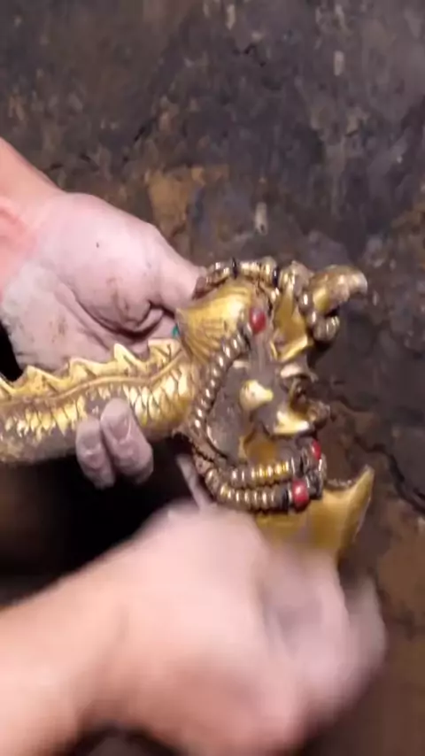 During the treasure hunt, I found the statue in the treasure#treasure#gold#bestv#cave#discovery