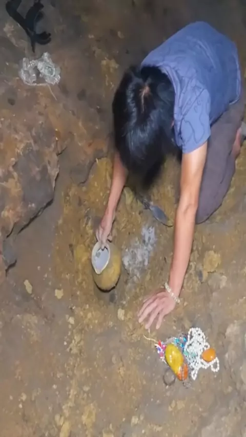 I searched for treasure in the cave and found the treasure left by the ancients. It's great#treasure#gold#findtreasure#bestvideo#