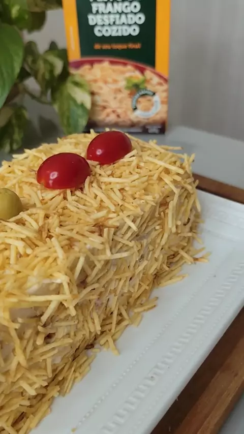 Bolo Salgado de Frango 😋🍞❤️ ou Torta de Pão e Forma! INGREDIENTES: ✔️400g de frango cozido e desfiado ✔️Óleo, cebola, alho, sal, pimenta do reino, páprica e orégano para temperar o frango ✔️1 cenoura pequena ralada ✔️1/2 xícara de azeitonas verdes fatiadas ✔️1/2 caixinha de creme de leite (100g) ✔️2 colheres de maionese para o recheio + 3 colheres de maionese para cobertura ✔️meio pacote de pão de forma sem a casca ✔️batata palha a gosto Gostou? Compartilha!