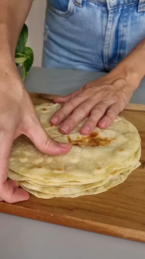 RAP10 caseiro (ou tortilha de trigo) 😋❤️ Mais barato, mais saudável e muito mais gostoso!!! Pra fazer wrap, tacos, burrito ou mesmo um lanche rápido! INGREDIENTES: ☑️250g de farinha de trigo ☑️5g de sal ☑️35g de óleo ou azeite ☑️120g de água morna #rap10 #tortilha #paocaseiro #wrap #metidaagourmet