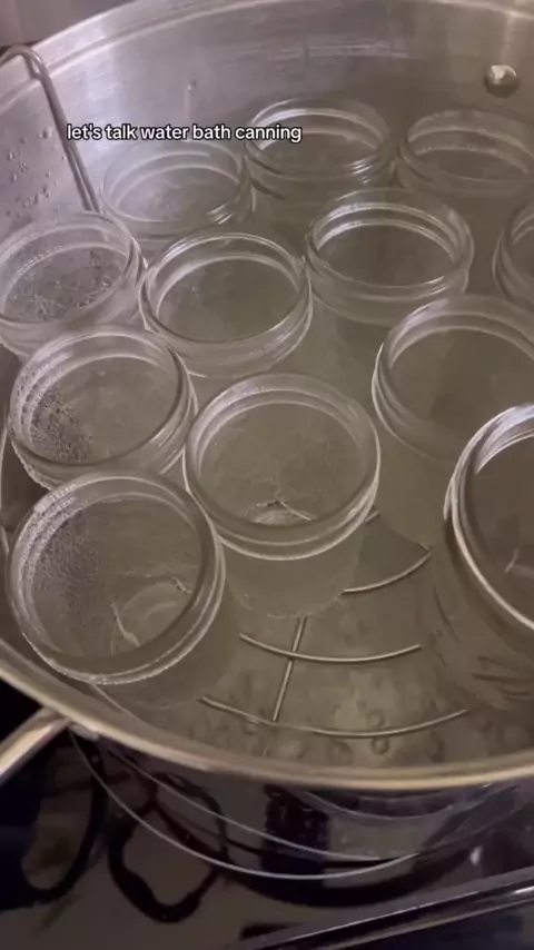Waterbath Canning 101: Parte 1! Preparando os frascos. 1. Esterilize os frascos de pedreiro carregando um pote de conservas e rack com frascos limpos e vazios. Abaixe o rack na panela, certificando-se de que todos os seus frascos estejam submersos e deixe ferver. Iniciando o temporizador quando a água estiver em uma fervura, ferva dez minutos. 2. Usando ferramentas esterilizadas levantador, levantador de tampa, pinças) frascos de transferência para a superfície de trabalho. 3. Prepare as tampas...