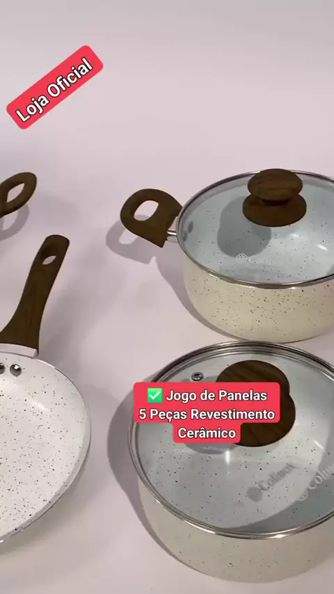 ✅️ Jogo de Panelas 5 Peças Revestimento Cerâmico