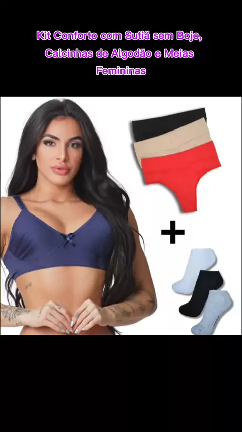 Kit Conforto com Sutiã sem Bojo, Calcinhas de Algodão e Meias Femininas #Kwaidaniel
