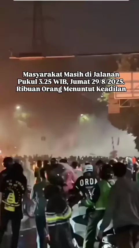 Pukul 3.25 WIB dini hari, Jumat 29/8/2025. Ribuan Orang Masih Di Jalanan Menuntut Keadilan Jakarta dini hari pukul 03.25, embun terasa bara yg menyala setelah kematian tr46is Afan Kurniawan akibat dilindas mobil Barakuda. https://youtube.com/shorts/yV0H_F7WsOw?si=LC26oPreyKuCbJcd