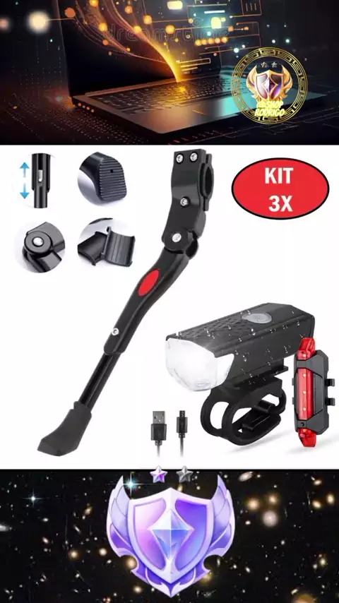 Descanso Lateral Pezinho Bike Regulagem Aro 20 À 29 Alumínio + Farol Bike 300 Lumens Sinalizador #MelhorVideo