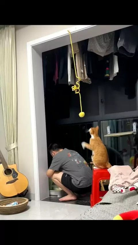 Quando o pai é tão paciente que até vira escada para o filhote brincar 🐱🏗️🔴 #brincadeirasdeliciosas #animaldeestimação #cute #gato #gatosfofos