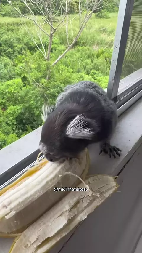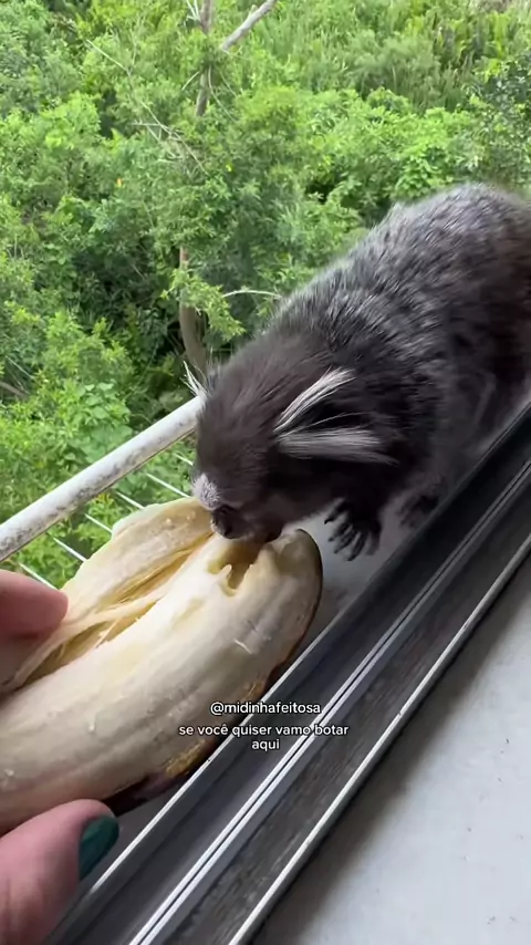 Eu os chamei e não imaginava que viriam tão rapidamente, a questão mesmo foi que não tinha cortado as bananas pra eles. Rsrs #saguis #silvestre #janela #alimento #CapCut