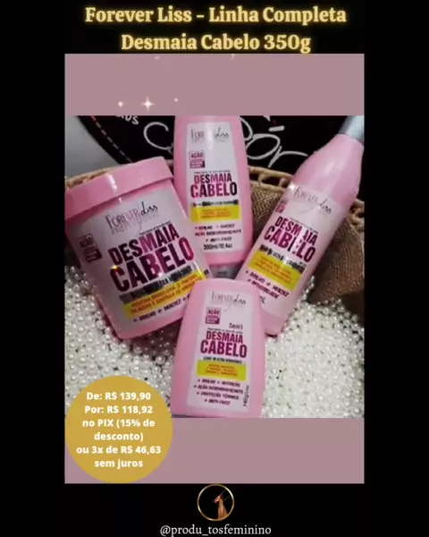 Possui ação instantânea Anti Volume e Frizz, super eficaz que age suavizando os fios, deixando os super sedosos, macios e com brilho. Com fórmula concentrada com Keratina Brasileira, D’Pantenol, e Sinergia de Aminoácidos recupera os fios agredidos pela química realizando uma hidratação profunda nos fios garantindo assim a redução do volume e alinhamento capilar. Indicada para todos os tipos de cabelos realmente Desmaia os Fios. #foreverliss #cabelo😍 #cuidadoscomocabelo #desmaiacabelo #cabelo