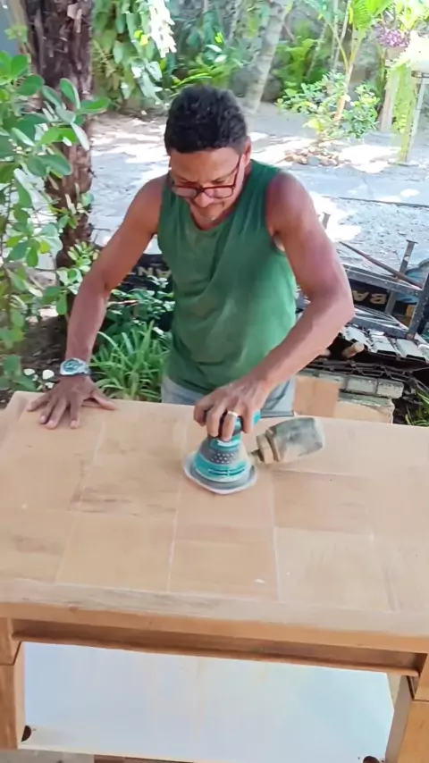 Restauração. lixamento, calafetação e impermeabilização da mesa de centro, feitas de madeirasde demolição,Peroba do campo. mauroartesemmadeira. 77998736831 77991348878