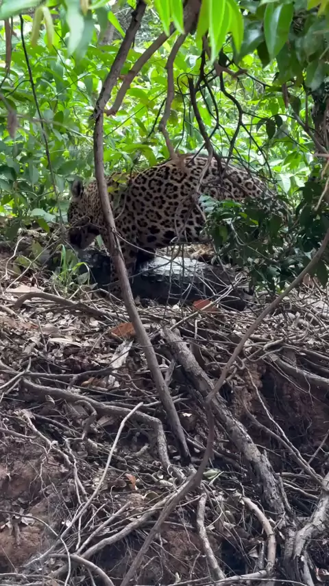onça- pintada de Pantanal carrega arranca jacaré de entro do rio ...