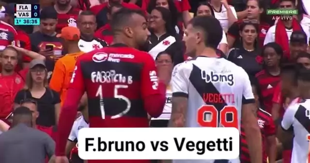 Fabrício Bruno: " Vem, vem, vem. Eu te espero lá fora." Vegetti: balançou a cabeça. 📽️: GE