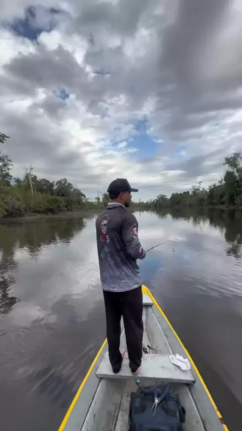 E aquela espuma ali? Era ele! A maior pancada da última trip! Sempre usando as linhas @fishermans.com.br , nesse equipamento estava a amazônica 50lb 8x. Uma linha fantástica e feita especialmente pra águas escuras, ou seja, pra maioria dos rios da Amazônia. Essa eu confio 👀 fechado. Não esqueça de usar meu cupom Mimura no site da @fishermans.com.br pra garantir um baita desconto! Pescaria na @pousadamonstrosdorio #tucunare #iscadesuperfície #helice #explosão