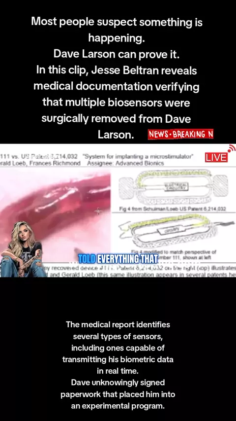 Most people suspect something is happening. Dave Larson can prove it. In this clip, Jesse Beltran reveals medical documentation verifying that multiple biosensors were surgically removed from Dave Larson. #USA #TargetedIndividuals #GLOBAL #world #Brazil