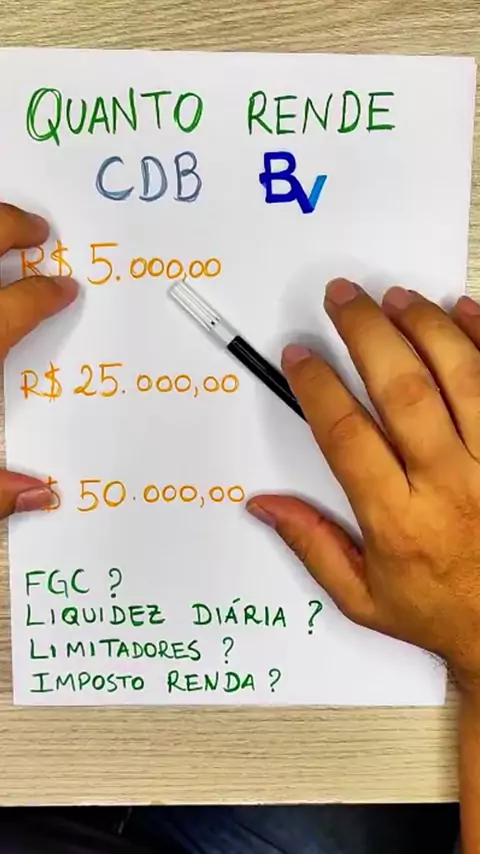 Entendendo CDB na prática, utilizando o CDB do BV como exemplo. #quantorende esses valores aplicados por um ano? #investimentos #dicas #dinheiro #viraliza