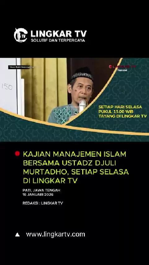 Mari tingkatkan kualitas diri dan kepemimpinan Islami Anda dalam Program Kajian Manajemen Islam bersama Ustadz Djuli Murtadho. Kupas tuntas manajemen berbasis nilai-nilai Islam yang aplikatif dan relevan dengan kehidupan sehari-hari. 🗓️ Setiap hari Selasa ⏰ Pukul 15.00 WIB 📺 Tayang di Lingkar TV 📱 Saksikan juga melalui aplikasi Lingkar TV unduh sekarang di Play Store, atau akses Lingkar TV. ✨ Lingkar TV, inspirasi tanpa batas. #JatengHariIni #LingkarTV #islamic #kajianislam #dakwah