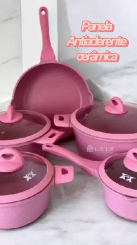 **Cozinhe com estilo e facilidade** Jogo de panela Antiaderente cerâmica rosa, perfeito para qualquer cozinha #cozinha #panela **Quem tiver interesse me chama no direct**