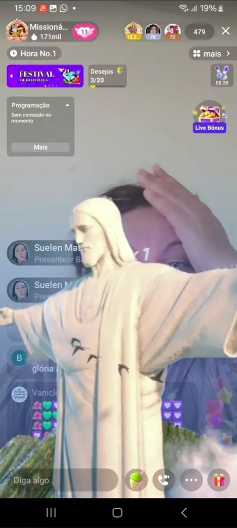 CRIADORA DE CONTEÚDO RELIGIÃO:Live na semana às 7:40 da manhã até 10:00hrs da manhã, e as 1:40 da tarde até às 4hrs