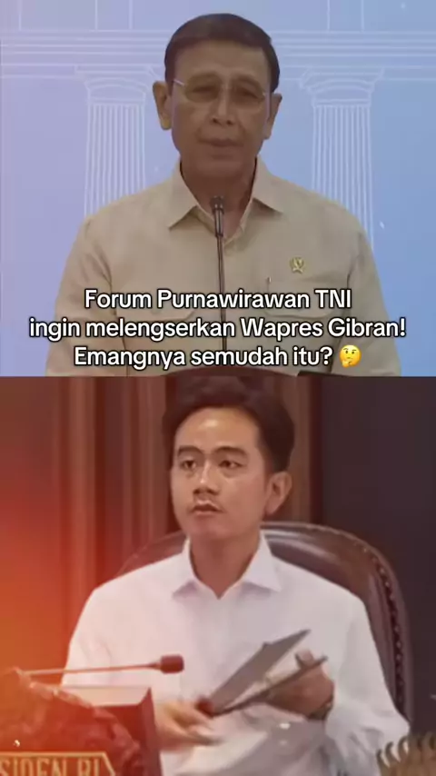 Forum Purnawirawan TNI memberikan delapan tuntutan kepada kepada Presiden RI Prabowo Subianto. Satu dari delapang tuntutan tersebut adalah melengserkan posisi Mas Gibran sebagai Wakil Presiden RI. #wapres #wakilpresiden #masgibran #gibran #wapresgibran #gibranrakabuming #wapresgibranrakabuming