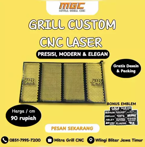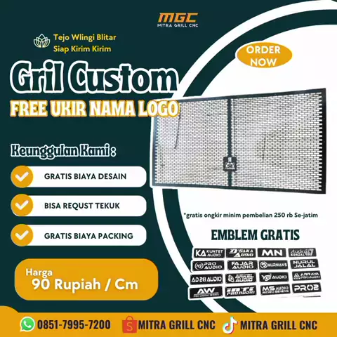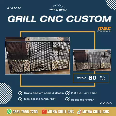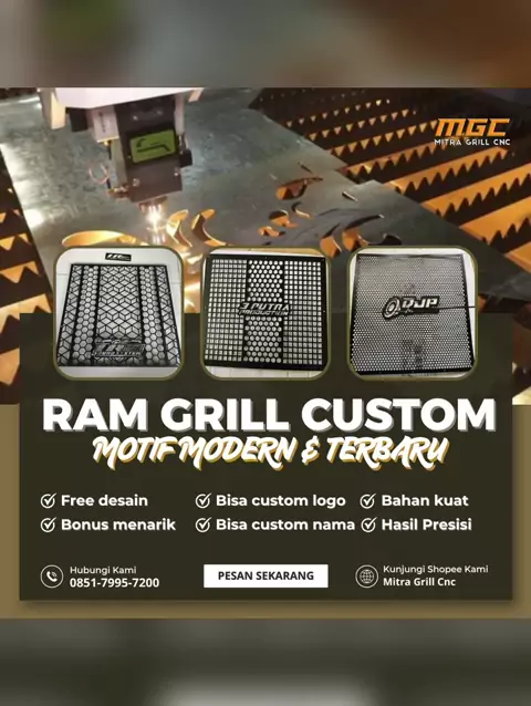 "Gratis Desain Grill Custom CNC โ€“ Premium & Awet!" "Bikin grill custom CNC kini lebih mudah dan hemat! โœจ Gratis biaya desain โœจ Bahan premium awet dan kokoh โœจ Packing aman sampai tujuan โœจ Gratis emblem keren untuk setiap pesanan ๐Ÿ’ฐ Harga mulai 90 rupiah/cm ๐Ÿ“ฆ Siap kirim ke seluruh Indonesia ๐Ÿ“ Produksi langsung dari Wlingi, Blitar ๐Ÿ“ž Hubungi kami sekarang dan wujudkan grill impianmu!" ๐Ÿ“ž 0851-7995-7200 ๐Ÿ›๏ธ Shopee: shopee.co.id/mitragrillcnc ๐Ÿ“ฑ TikTok: tiktok.com/mitragrillcnc #mitragrillcnc #