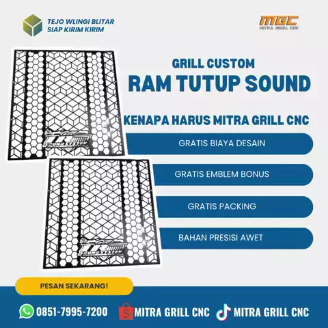 ๐ŸŽฏ GRILL CUSTOM RAM TUTUP SOUND โ€“ TAMPIL RAPI & PROFESIONAL! ๐Ÿ”ฅ Bikin tampilan sound system kamu makin keren dengan Grill Custom CNC dari Mitra Grill CNC! Desain bisa disesuaikan dengan nama tim atau logo kamu ๐Ÿ’ช Kenapa pilih kami? โœ… Gratis biaya desain โœ… Gratis emblem bonus โœ… Gratis packing โœ… Bahan presisi & awet ๐Ÿ“ Tejo Wlingi โ€“ Blitar, Jawa Timur ๐Ÿ“ž 0851-7995-7200 ๐Ÿ›’ Shopee & TikTok: Mitra Grill CNC #grillcustom #ramtutupspeaker