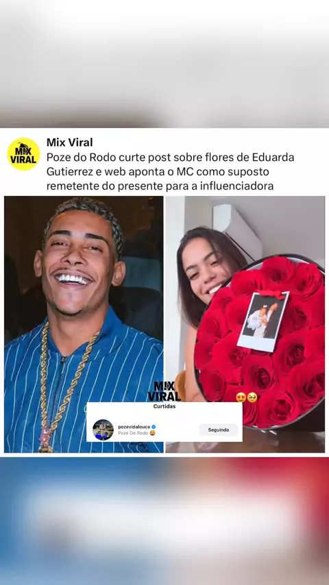 SOCORRO! Após Eduarda Gutierrez mostrar o buquê gigante de rosas que ganhou, o Mc Poze do Rodo deixou uma curtida na publicação de uma página que falava sobre o presente. Embora nada tenha sido confirmado por ambos, a curtida do cantor foi o suficiente para os fãs criarem mil teorias! O que vocês acham? 🗣️ #EduardaGutierrez #McPoze #Fofoca #Polemica #Famosos