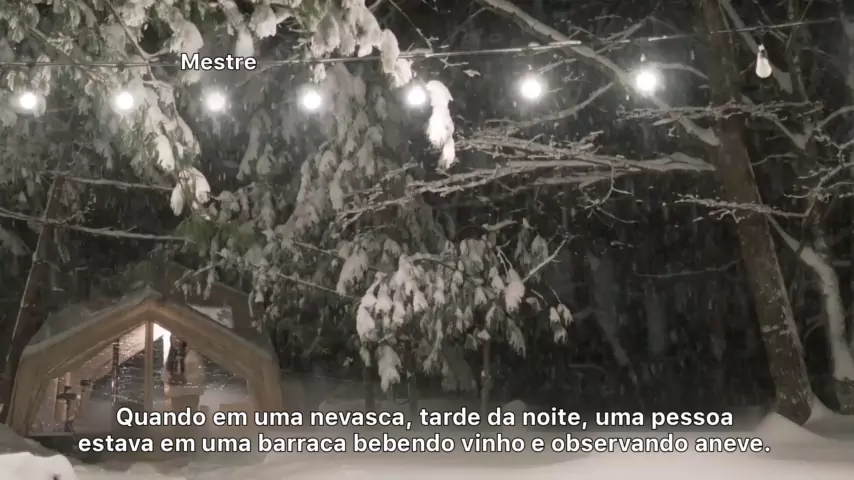 Quando numa nevasca de fim de noite, uma pessoa senta-se numa tenda a beber vinho a ver neve, deita-se na cama a ver filmes # camping # tenda # neve