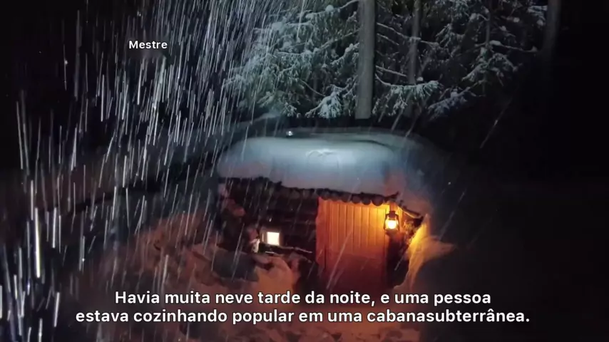 - na selva russa de 27 graus, com neve pesada à noite, uma pessoa em uma cabine subterrânea assando cabine de cozinha popular # # Neve # Ansiando pela vida