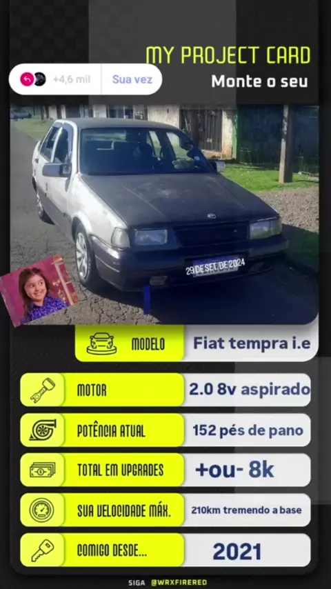 "CRIADOR DE MOMENTOS INESQUECIVEIS" projeto tempra i.e 95 cinza mkdotempra
