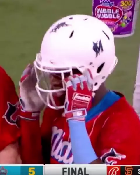 THE MARLINS HAVE A WALK-OFF FOOTBALL HELMET 🏈 🎥: @ballysportsmarlins #pitcher #MLB #baseball #MLBB #QueridosDoBrasil