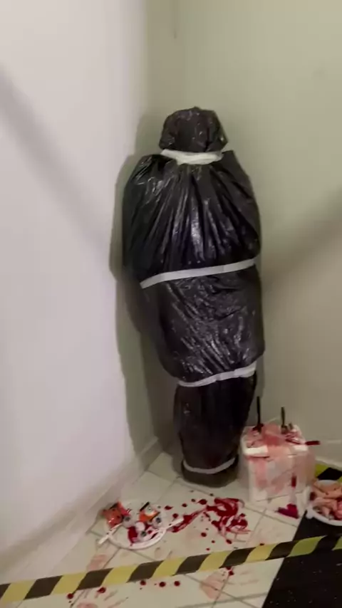 CENA DE FILME DE TERROR?! 😱 Gente do céu… eu juro que quase deixei a cesta e saí correndo! 🧺💨 Cheguei pra fazer a entrega toda feliz, Mas quando olho pra frente da porta: um corpo embrulhado e sangue no chão! 😳🩸 Meu coração veio parar na garganta até lembrar que era decoração de Halloween! 😂😂 Foi um dos maiores sustos da minha vida (e o mais engraçado também!). Mas no fim deu tudo certo: a cesta foi entregue com muito amor, risadas e um pouquinho de adrenalina! 🧡✨ Porque aqui na @mmde