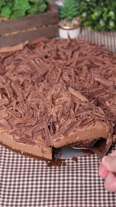Cheesecake de Chocolate sem Fogo e sem Gelatina 🍫 Ingredientes: 200g de Biscoito de Maizena de Chocolate 4 Colheres (sopa) de Manteiga/Margarina Derretida 450g de Chocolate (usei o blend, mas pode ser ao leite ou meio amargar) 1 Cx de Leite Condensado (395g) 300g de Cream Cheese Raspas de Chocolate para decorar a gosto Forma 24x5 de fundo removível Modo de Preparo: 1 – Triture o biscoito de maisena até virar uma farofinha, coloque em uma vasilha, acrescente a manteiga derretida, vai mexend