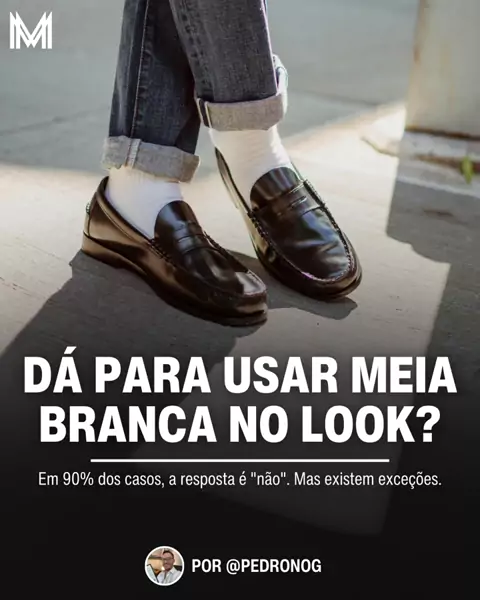 A meia branca é um dos maiores tabus da moda masculina. Em 90% dos casos, o melhor é você evitá-la. Mas existem algumas exceções em que ela pode fazer sentido no look. #modamasculina #meiabranca