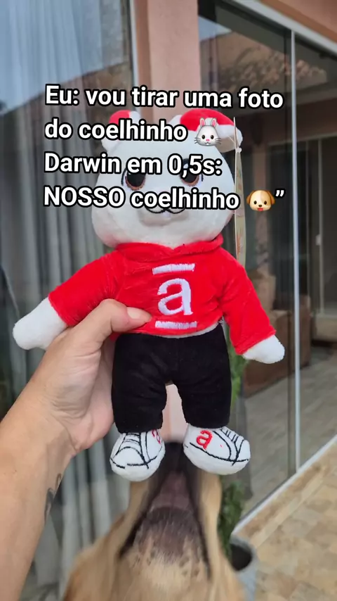 Só queria tirar uma foto do meu coelhinho da Páscoa… o Darwin: missão capturar iniciada 🐶🐰💨” Hashtags: #goldenretriever #petengraçado #cachorro #pascoa #humorpet