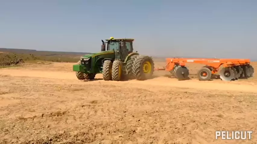 Trator John Deere com grade aradora civemasa 16x42 no preparo de solo