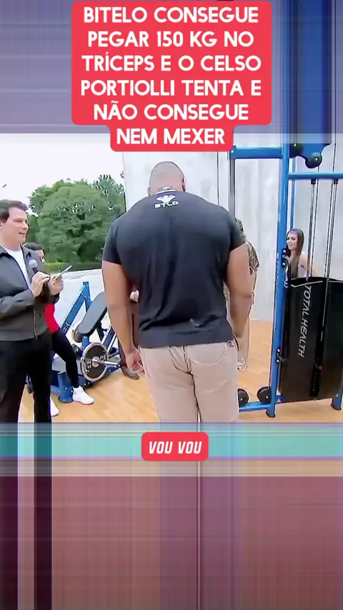 bitelo consegue pegar 150 kg no tríceps e o Celso Portiolli tenta e não consegue nem mexer
