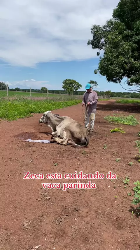 Zeca cuidando da vaca parinda #vidanaroça #vaca #roça