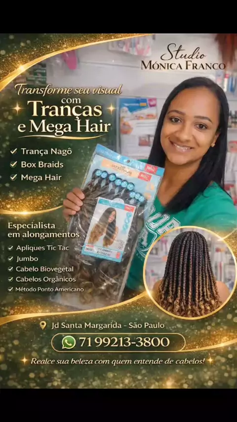 Empreendedora, mãe, cabeleireira e Esteticista. Criador (a) de conteúdo , gostaria de mostra meu trabalho no ramo da Beleza, sejam todos bem vindo divulgando 🚀 @studiomonicafranco 🚀 zona sul sp