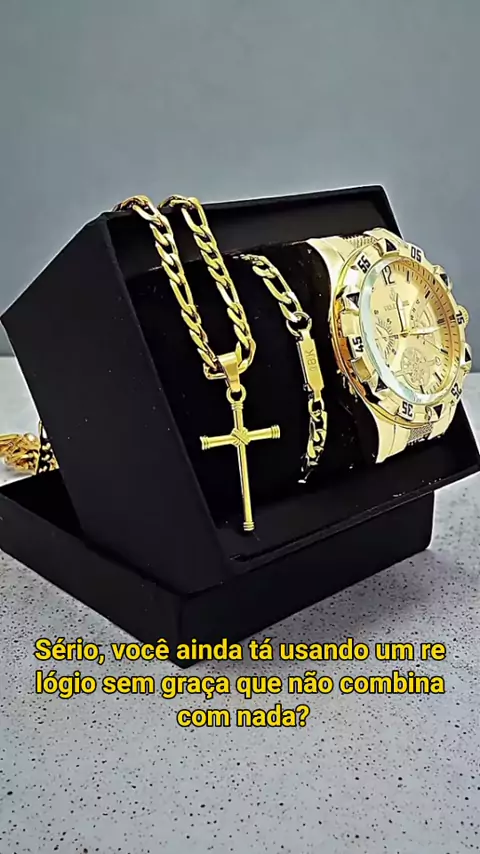 Relógio Dourado + Kit Completo: Luxo e Estilo ao Seu Alcance! #relogiomasculino #ouro18k #estilomasculino #modamasculina #luxo