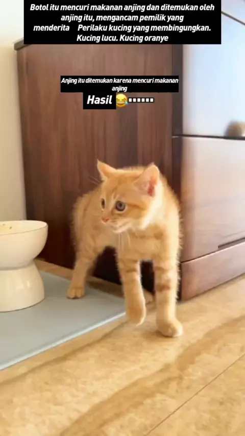 Botol itu mencuri makanan anjing dan ditemukan oleh anjing itu, mengancam pemilik yang menderita😸Perilaku kucing yang membingungkan. Kucing lucu. Kucing oranye