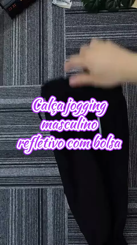 Calça jogging masculino refletivo com bolsa #Vem2026NoKwai