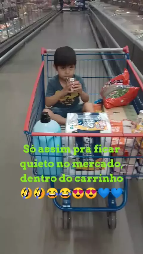 Não para de pega bobeira e a mãe coloca dentro do carrinho de mercado kkkkk #filhoamoreterno