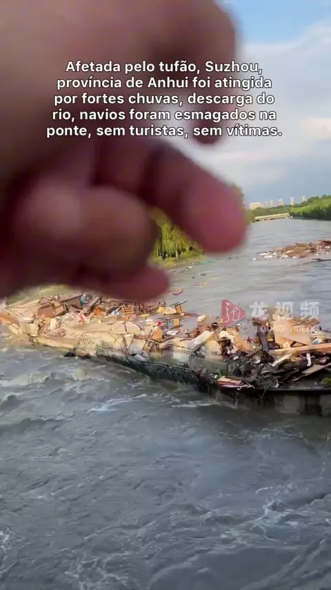 Em 14 de julho, em Xiangyang, província de Hubei, um homem transferiu seu filhote de cachorro durante uma forte chuva e preparou "um barco" para eles.