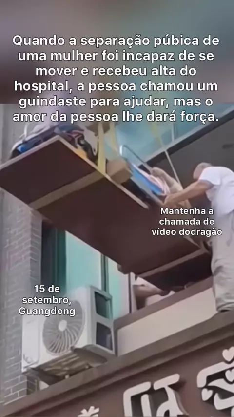 O osso púbico da mulher foi separado após o parto e não podia se mover. Quando ela recebeu alta do hospital, ela chamou um guindaste para ajudar.