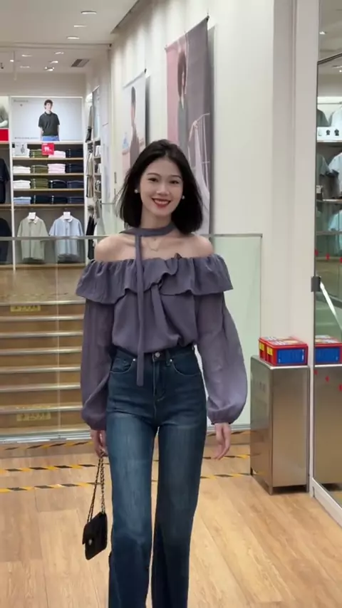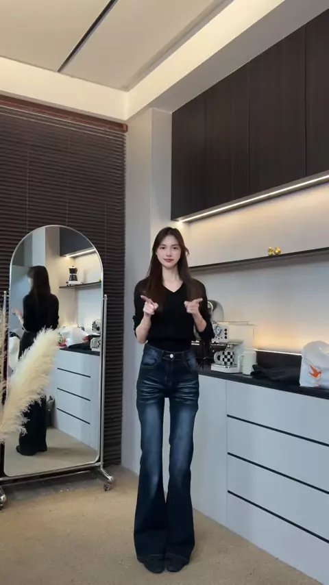 Celana jeans pinggang tinggi yang super elegan #promoguncang22 #jeans #gaya #outfitideas #luck-wanita