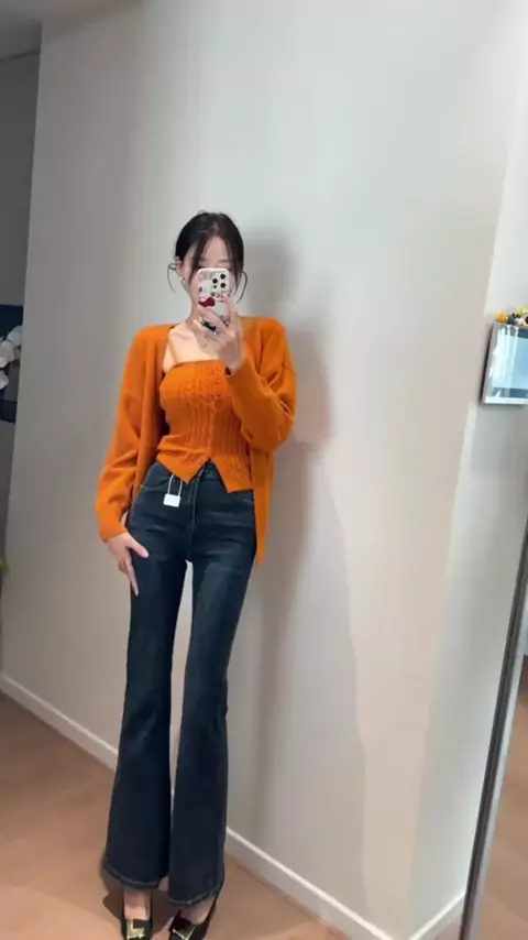 celana jeans model slim-fit melebar di bagian bawah #promoguncang22 #jeans #cutbray ##fashion #luck-wanita