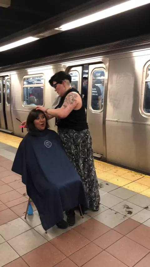 Only on the NYC Subway does someone decide to get her hair cut! #hairstyling #haircut #nycsubway
