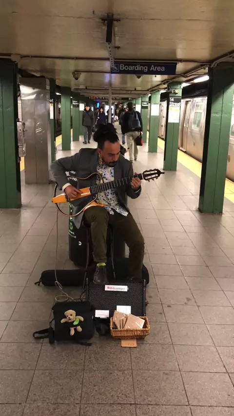This NYC Subway busker definitely has one of the coolest guitars on the market & it was a pleasure watching him perform! #music #nyc #guitar
