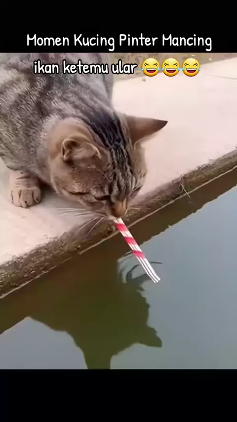 Kucing Pinter Mancing ikan, malah ketemu ular 😂😂😂 #kucing #kucinglucu #kucingpinter #cat #catsof