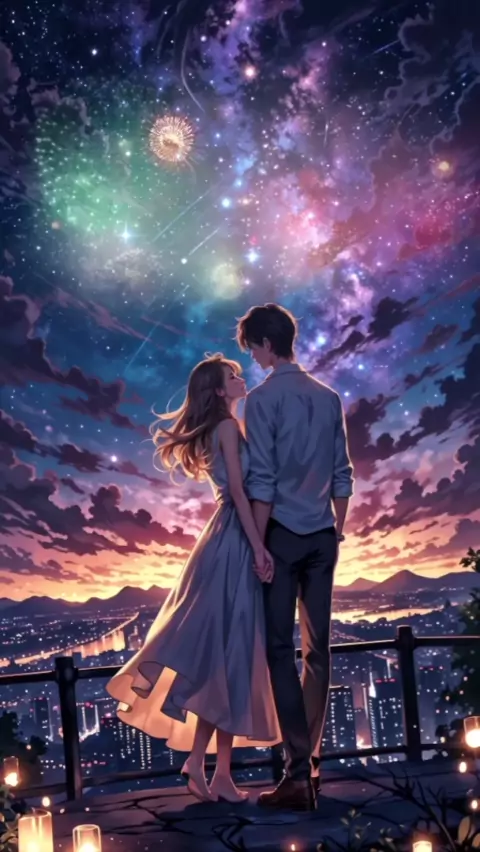 Love in the air, fireworks in the sky, a spectacle for hearts shining together. #aicommunity #aiartworks #trending #trendingnow #illustration vibes