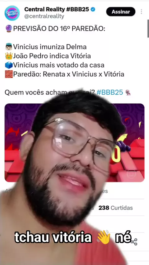 🔮PREVISÃO DO 16º PAREDÃO: 👼🏻Vinicius imuniza Delma 👑João Pedro indica Vitória 🗳️Vinicius mais votado da casa 🧱Paredão: Renata x Vinicius x Vitória Quem vocês acham que sai? #BBB25    #bbb25 #comentandobbb25 #ComentaristaNoticiais #ladobbbkwai